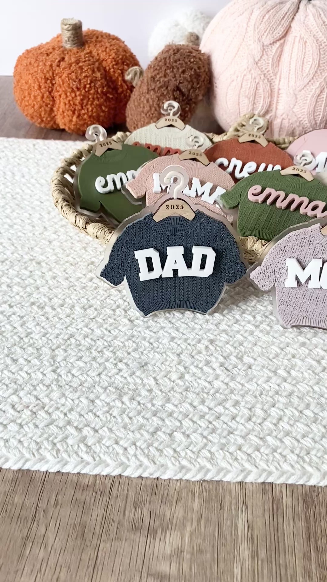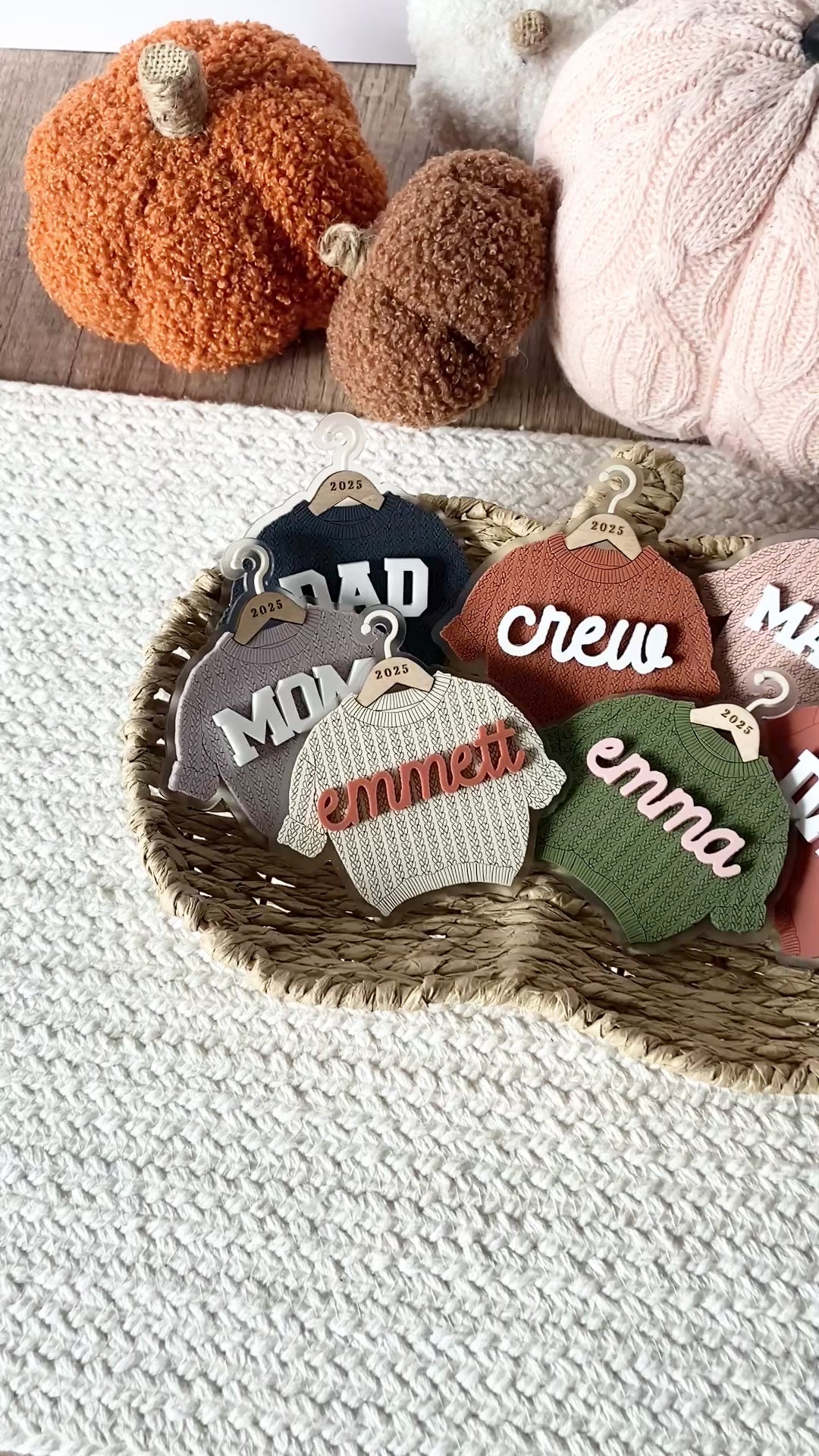 Cozy meets customizable in this adorable sweater-shaped tag that doubles as a Christmas ornament or year-round accessory for backpacks, duffle bags, diaper bags or luggage. Each piece is triple-layered with acrylic and topped with a wooden hanger engraved with the year — a sweet detail that makes it a keepsake you’ll treasure for years to come.