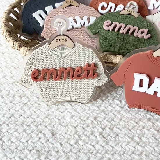 Cozy Threads – Personalized Sweater Ornament/Tag