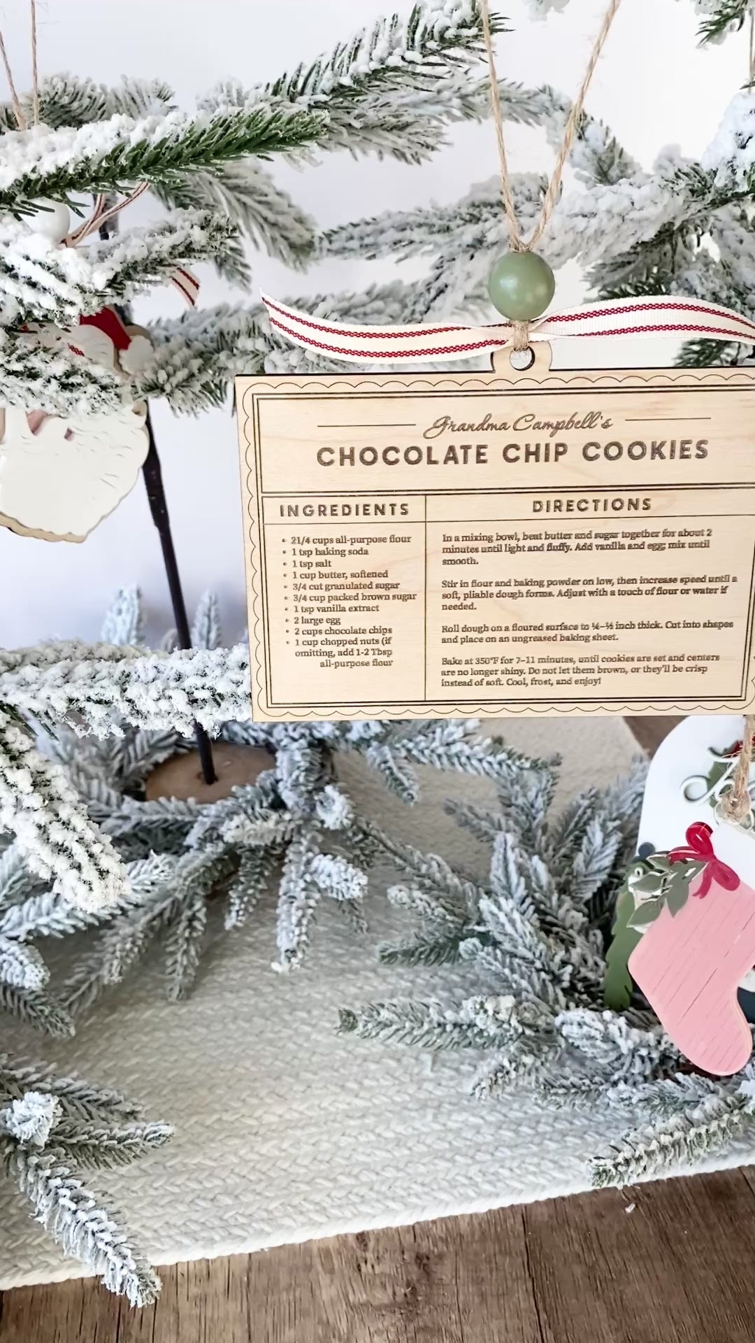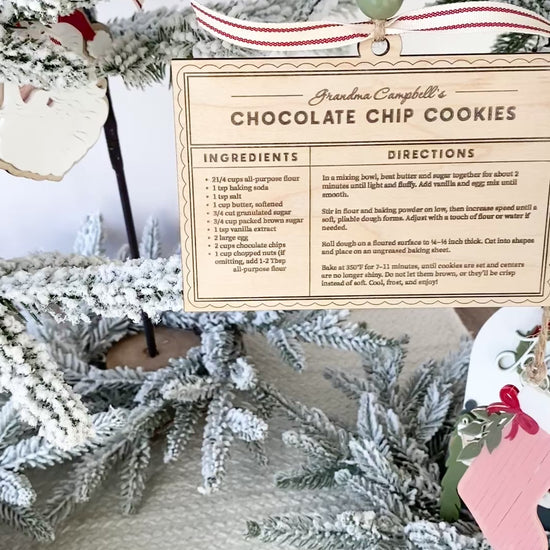 Each ornament is engraved on 1/4" wood to look like a vintage recipe card ~ complete with your loved one’s recipe. Whether it’s Grandma’s famous cookies, Dad’s secret chili, or your own holiday pie, this ornament turns a treasured recipe into a timeless keepsake you’ll cherish every Christmas. Makes for a special ornament or kitchen decor.