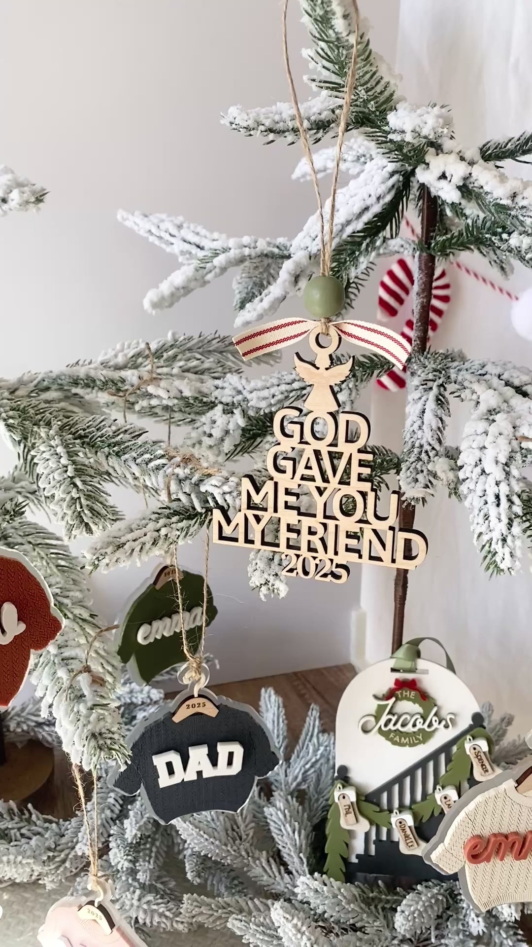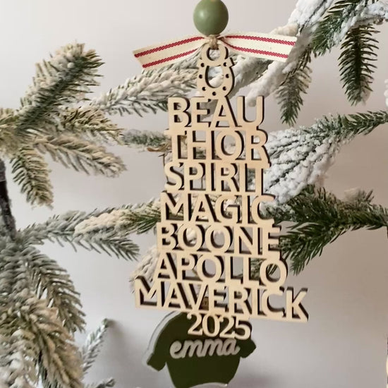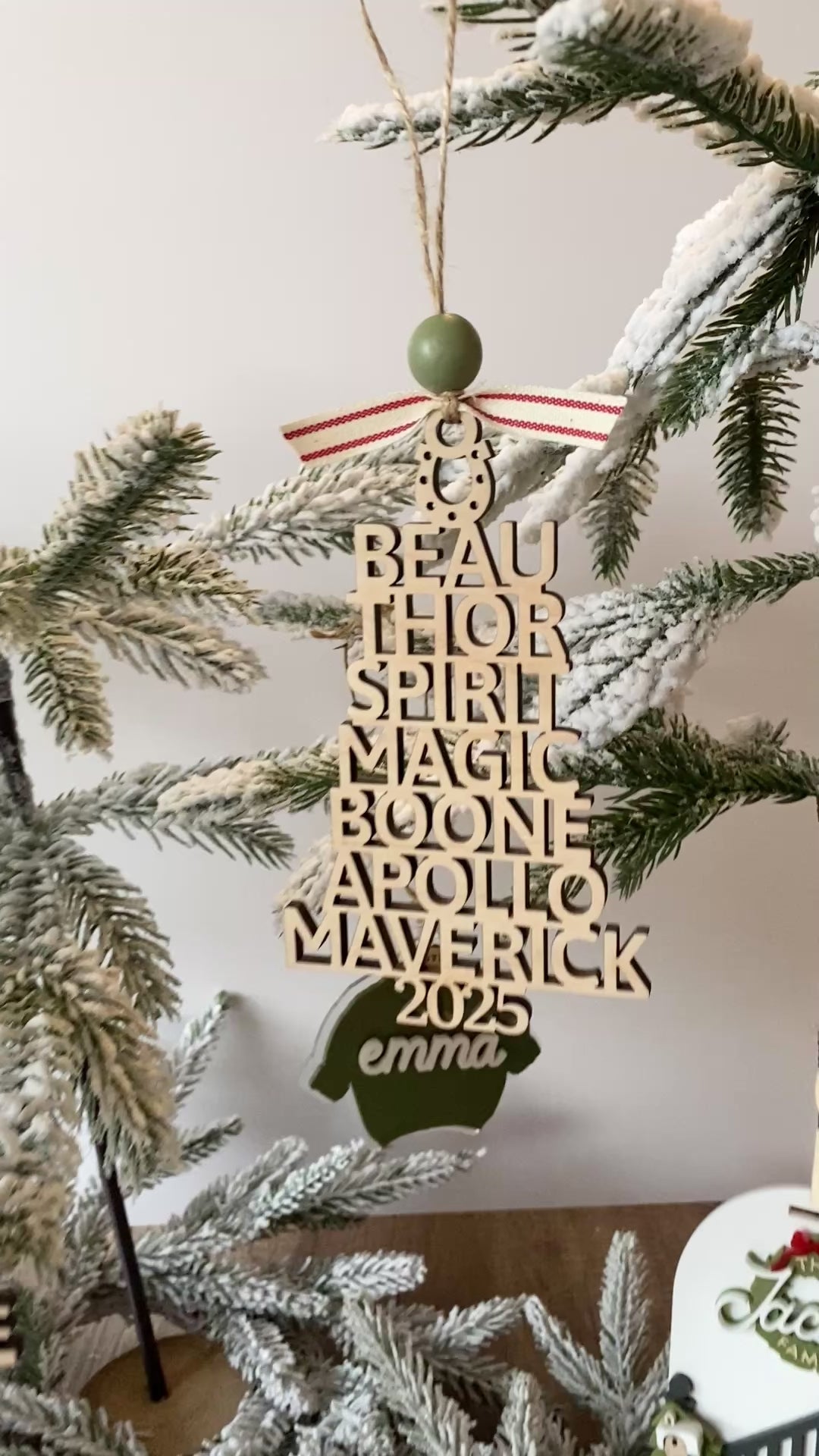 Rooted in love and crafted with care, this Christmas Tree Keepsake Ornament, a one-of-a-kind keepsake that layers your loved ones’ names or words to form the shape of a Christmas tree. Your stacked word tree can be anything meaningful ~ from family names to favorite sayings...list your grandkids, pets (paw prints included 🐾), office crew, friends, book club, cheer squad, volleyball team, baseball team, or how about a favorite scripture, quote, beloved family saying or motto, inside joke or shared phrase, or lyrics that capture your holiday spirit ✨!