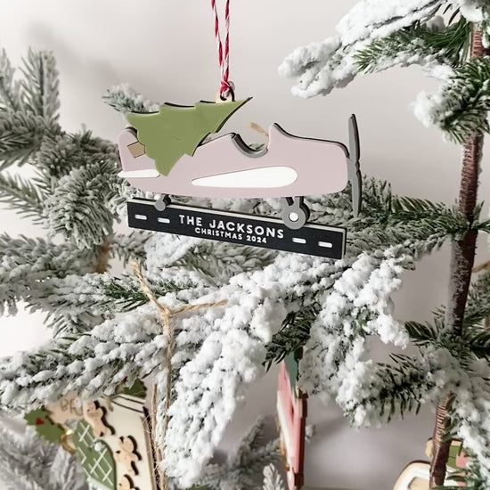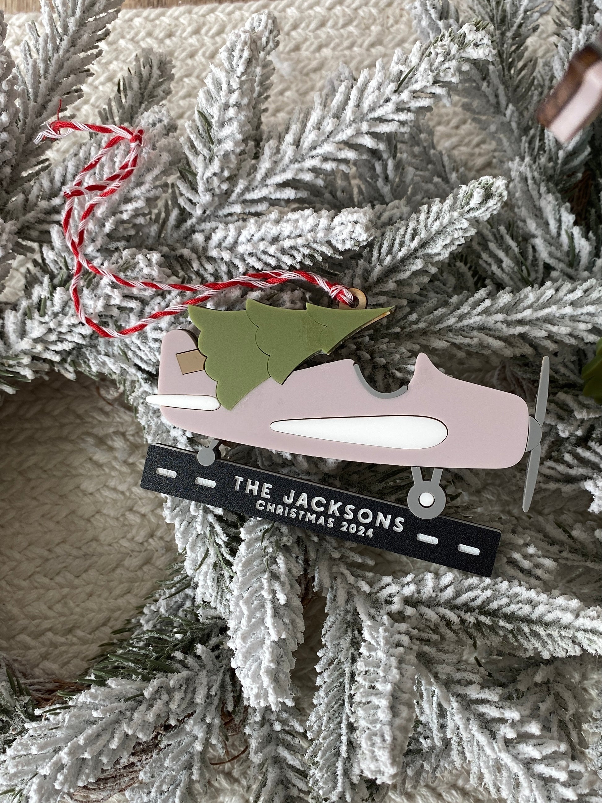Perfect for little adventurers, future pilots, and long-distance families, this layered wood and acrylic airplane ornament is ready to "take flight" on your Christmas tree! Each piece is handcrafted with layered wood and acrylic in soft tones of white, silver-lavender, green, and grey, and finished with red-and-white baker’s twine ~ a perfect balance of cozy and modern for your Christmas tree.