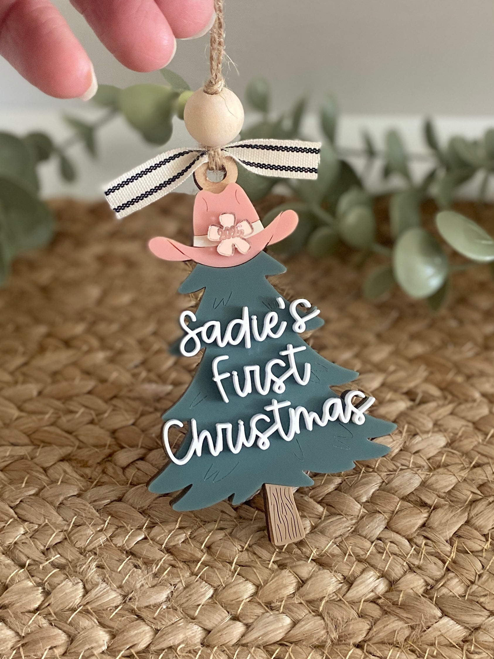 Giddy up, it’s baby’s first Christmas! 🎄🤠 Celebrate your little cowpoke’s very first Christmas with this Personalized Cowboy or Cowgirl Hat First Christmas Ornament ~ a sweet keepsake full of western charm.