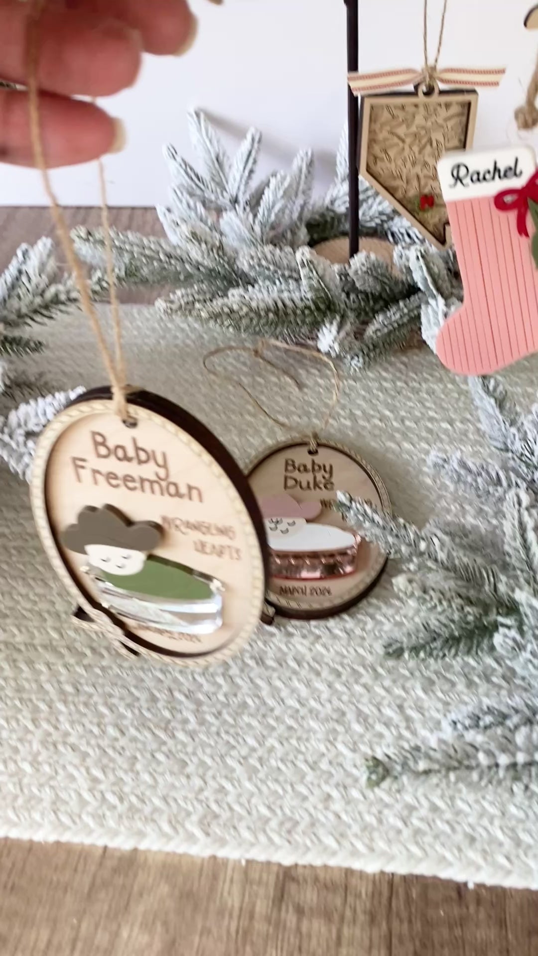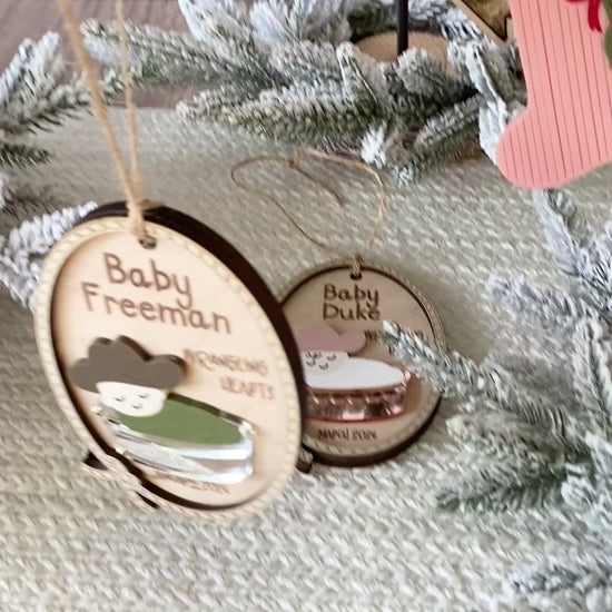 Pair this ornament with a baby blanket, photo frame, or first Christmas card for the perfect ready-to-gift bundle. Wrap in kraft paper or tuck inside a gift bag and tie with twine or gingham ribbon for that rustic, handmade touch that feels right at home under the tree.