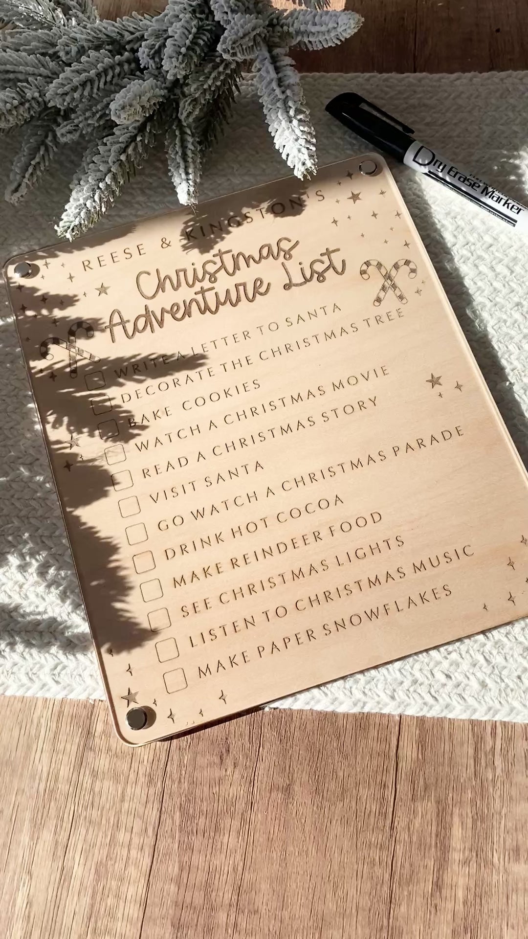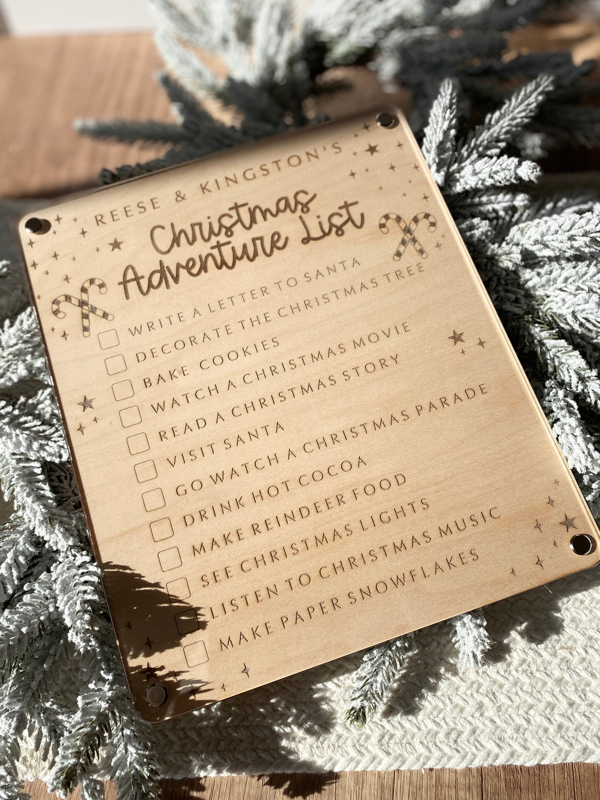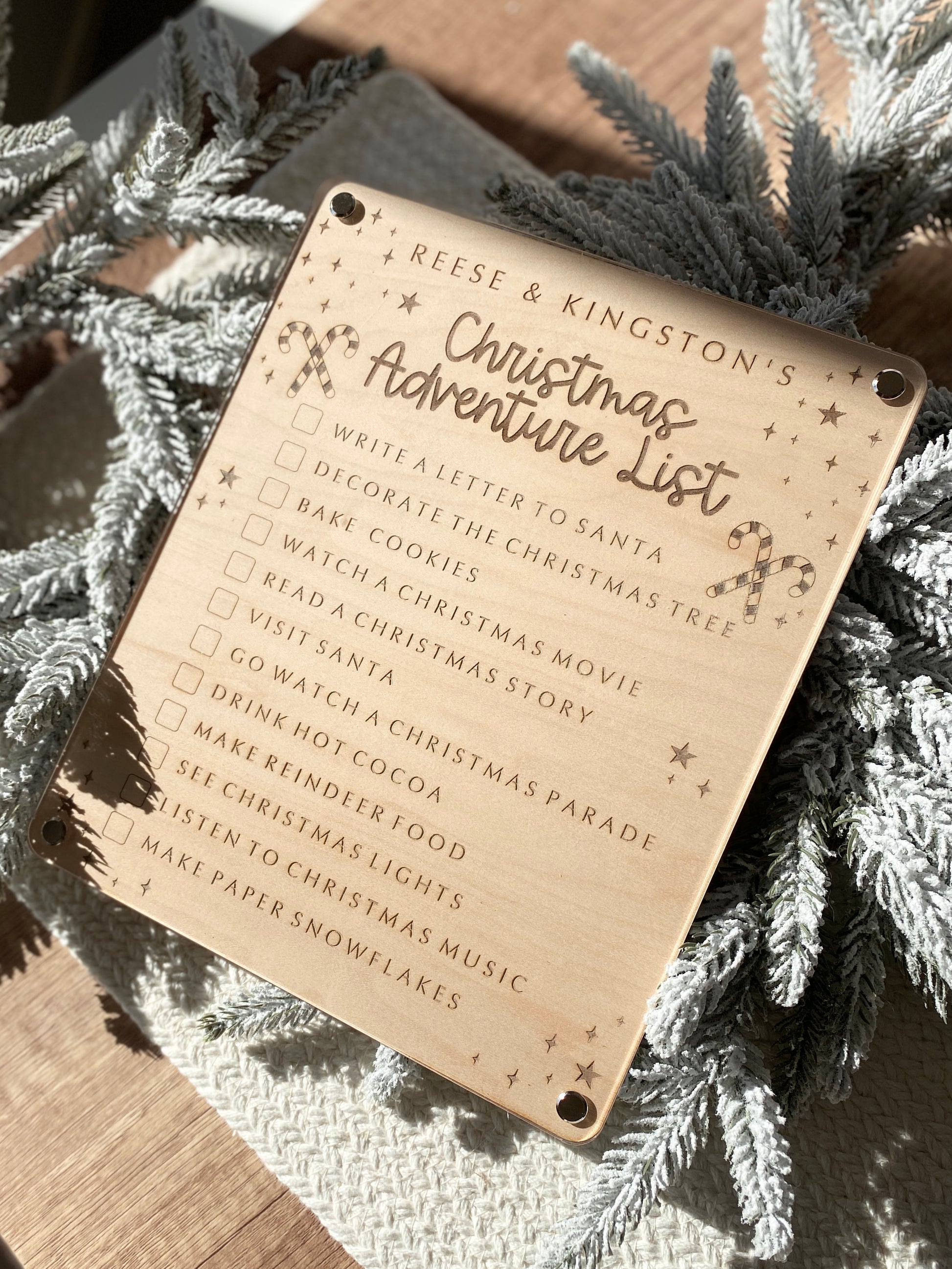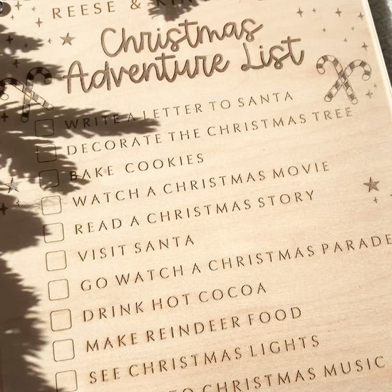 Each family celebrates the season in their own special way! If you’d like to make your board truly unique, you can customize the list of Christmas adventures. Simply include your preferred activities or swap out a few of mine when placing your order ~ for example, "take cookies to the fire station", “go watch The Nutcracker", "watch 'It's a Wonderful Life' (or your family's favorite Christmas movie)", “make snow angels”, “build a snowman, etc.”.