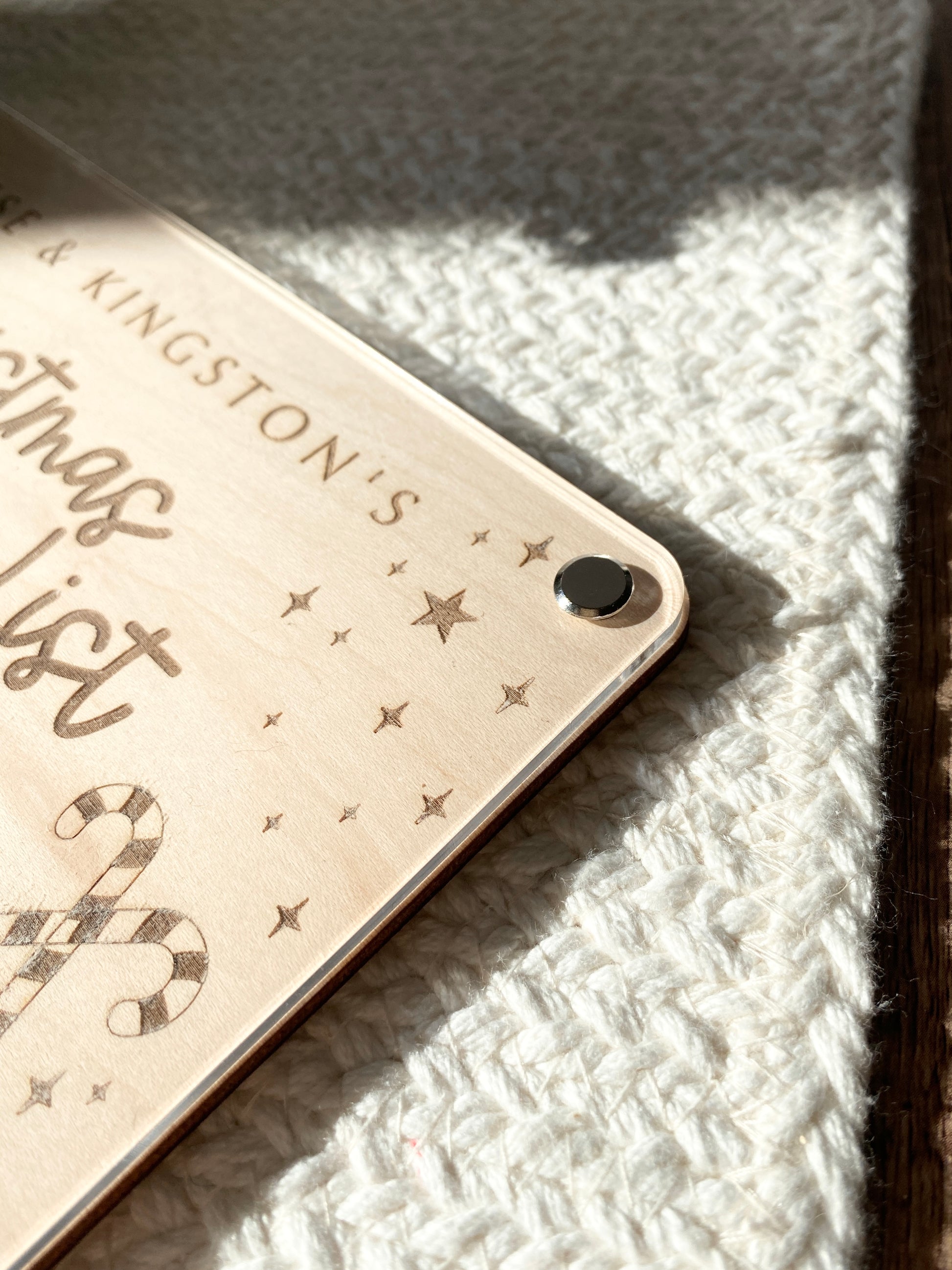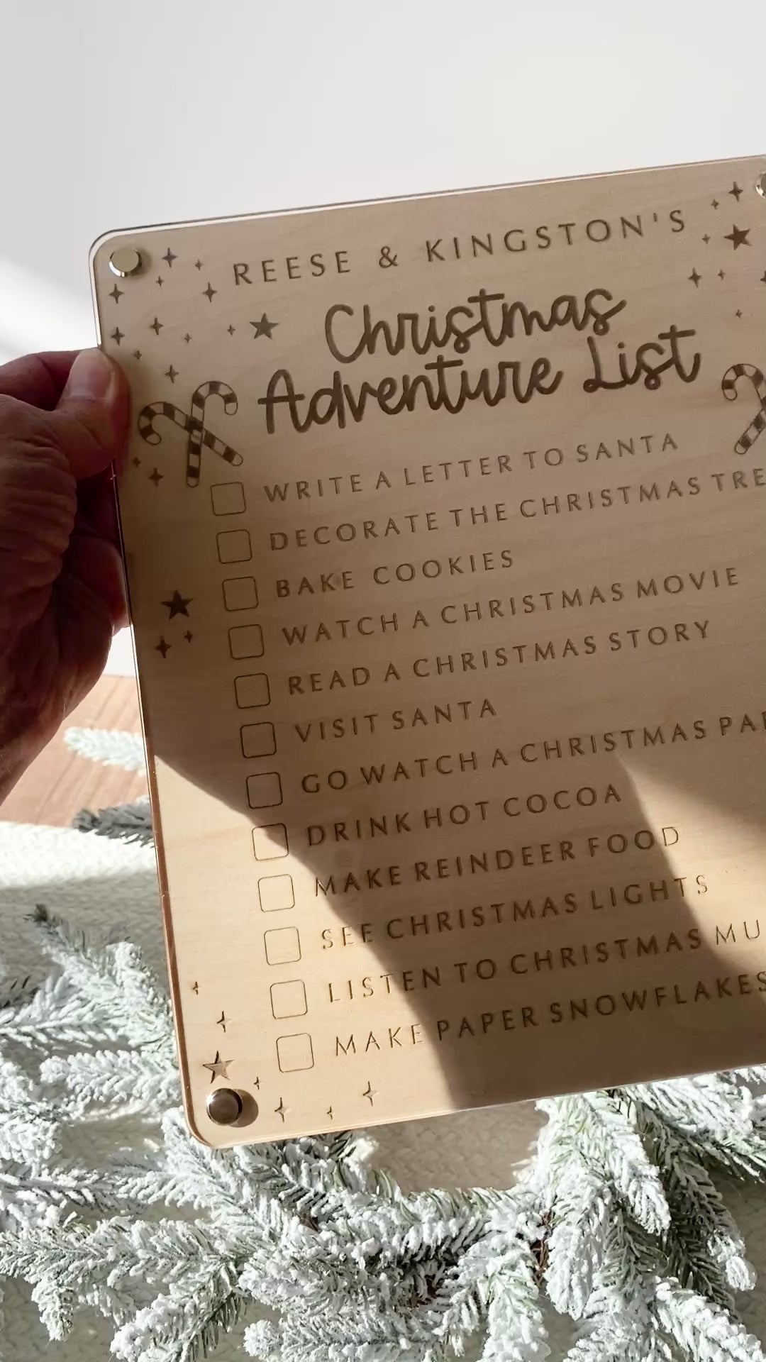 Crafted from wood with a clear acrylic overlay, the two layers are securely fastened together with a Chicago screw, giving it a sturdy, polished finish while allowing the acrylic surface to be easily wiped clean. Little ones can check off each Christmas adventure ~ from baking cookies and decorating the tree to visiting Santa and sipping cocoa by the fire.