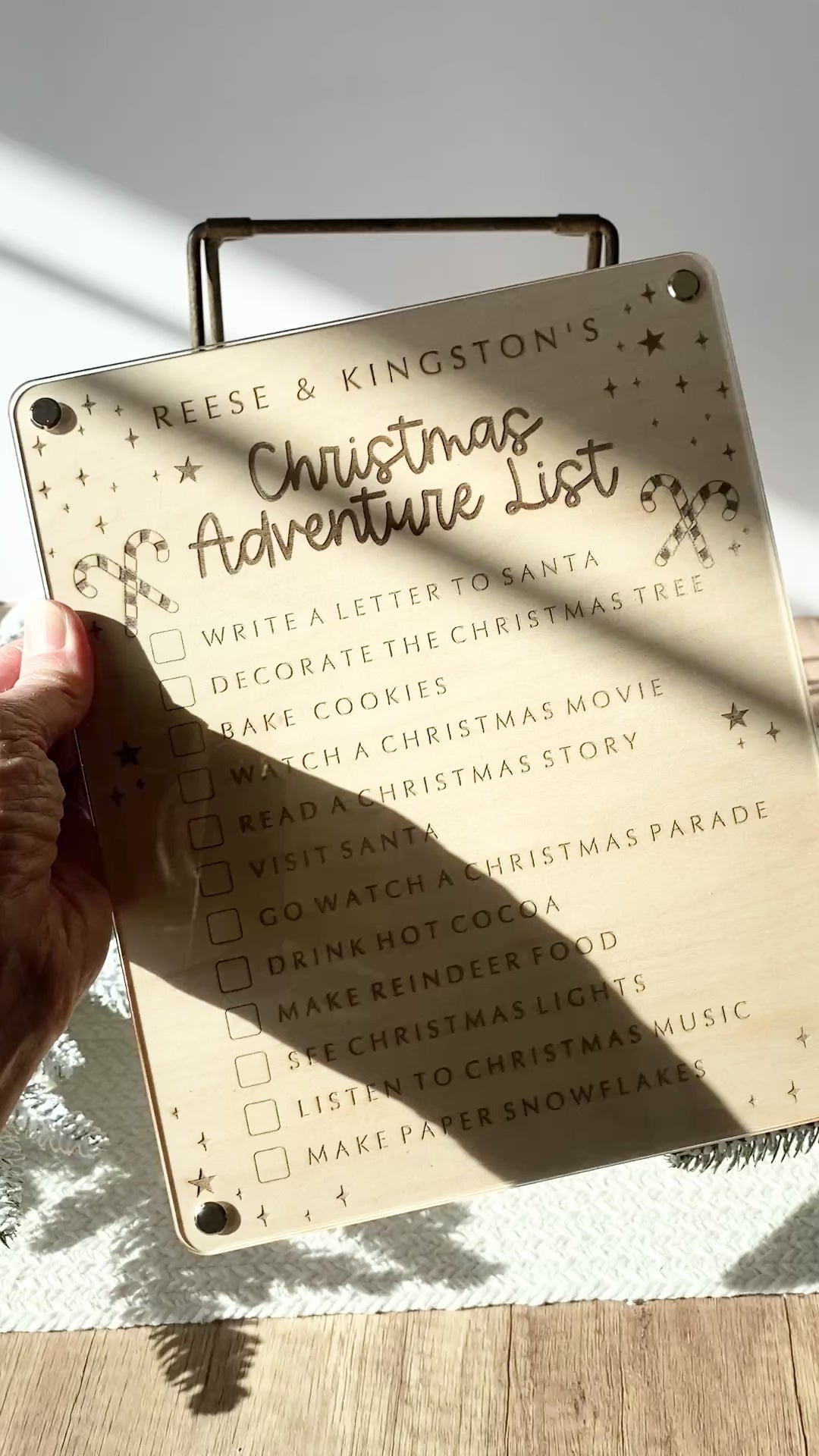 This board makes a thoughtful, ready-to-give gift for families, teachers, or grandparents. Pair it with a dry-erase marker, hot cocoa packet, or holiday mug for a cozy Christmas bundle everyone will love. Wrap it in kraft paper or tuck in a gift bag, add a candy cane and tie it with festive ribbon for perfect gifting at the start of December!