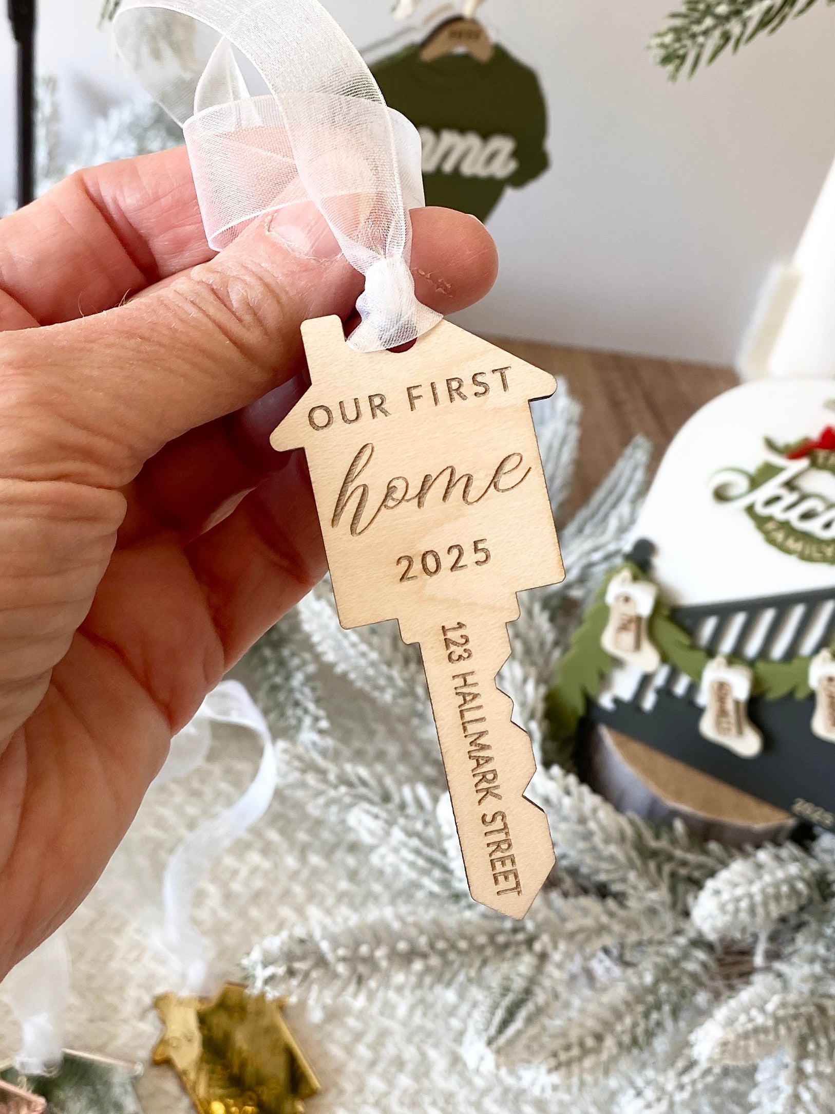 Whether it’s a housewarming gift, a holiday keepsake, or a memento of a first Christmas in a new home, this ornament adds a personalized touch of warmth and elegance.