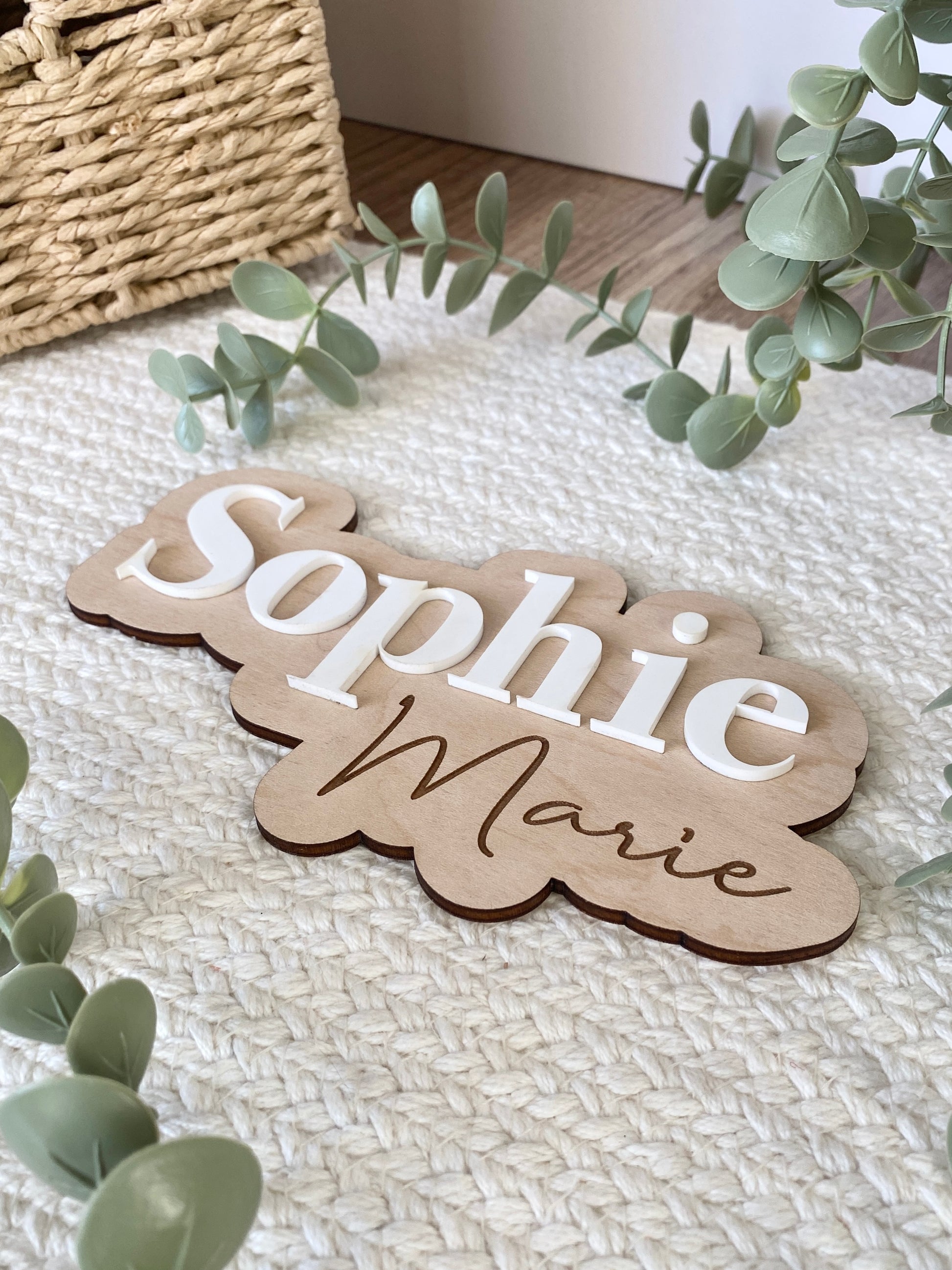 Designed to lay gently beside baby or above their head during hospital or at-home newborn sessions, this layered wooden name plaque adds a soft, timeless touch to birth announcements and keepsake photography.
