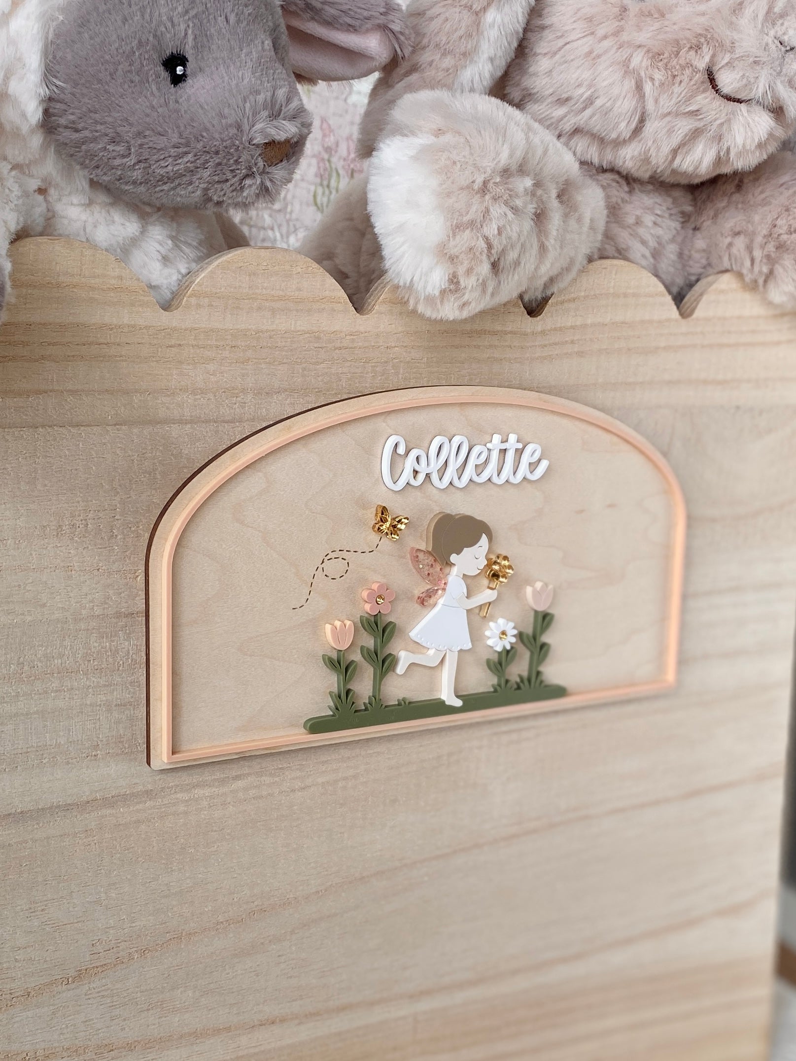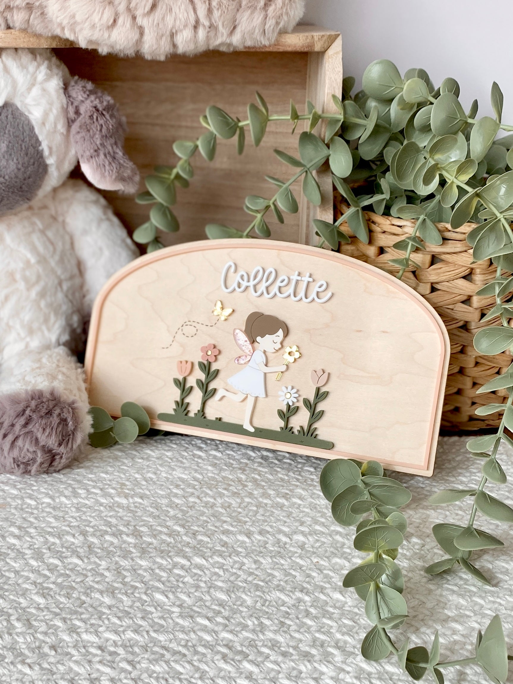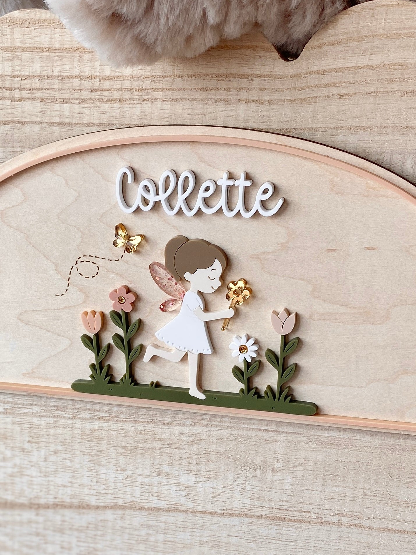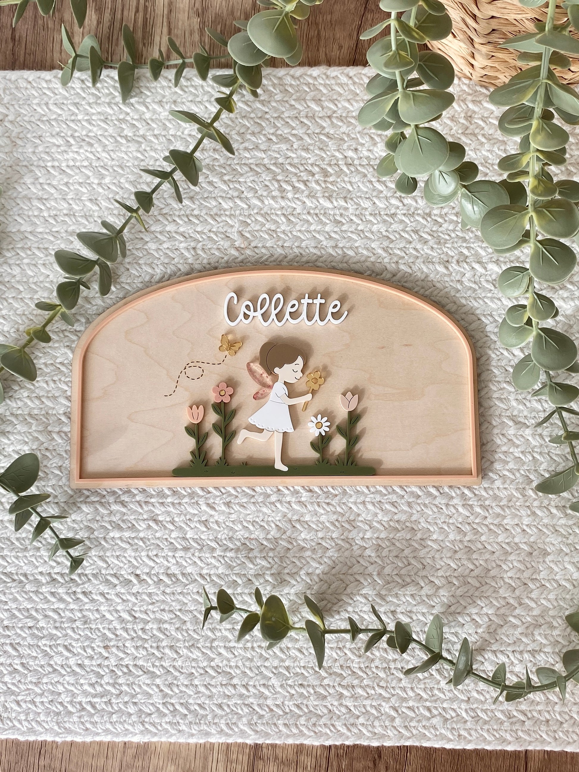This Personalized Garden Fairy Name Plaque features a delicate layered design with soft, storybook-inspired details. Crafted from wood and acrylic, each piece is precision cut and carefully assembled to create a beautifully dimensional finish that feels both playful and refined.
