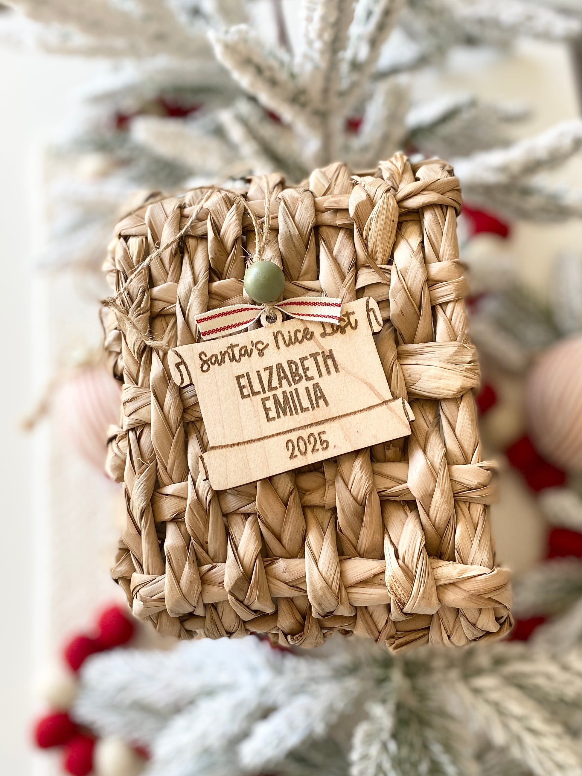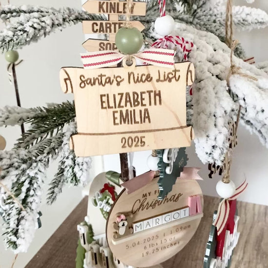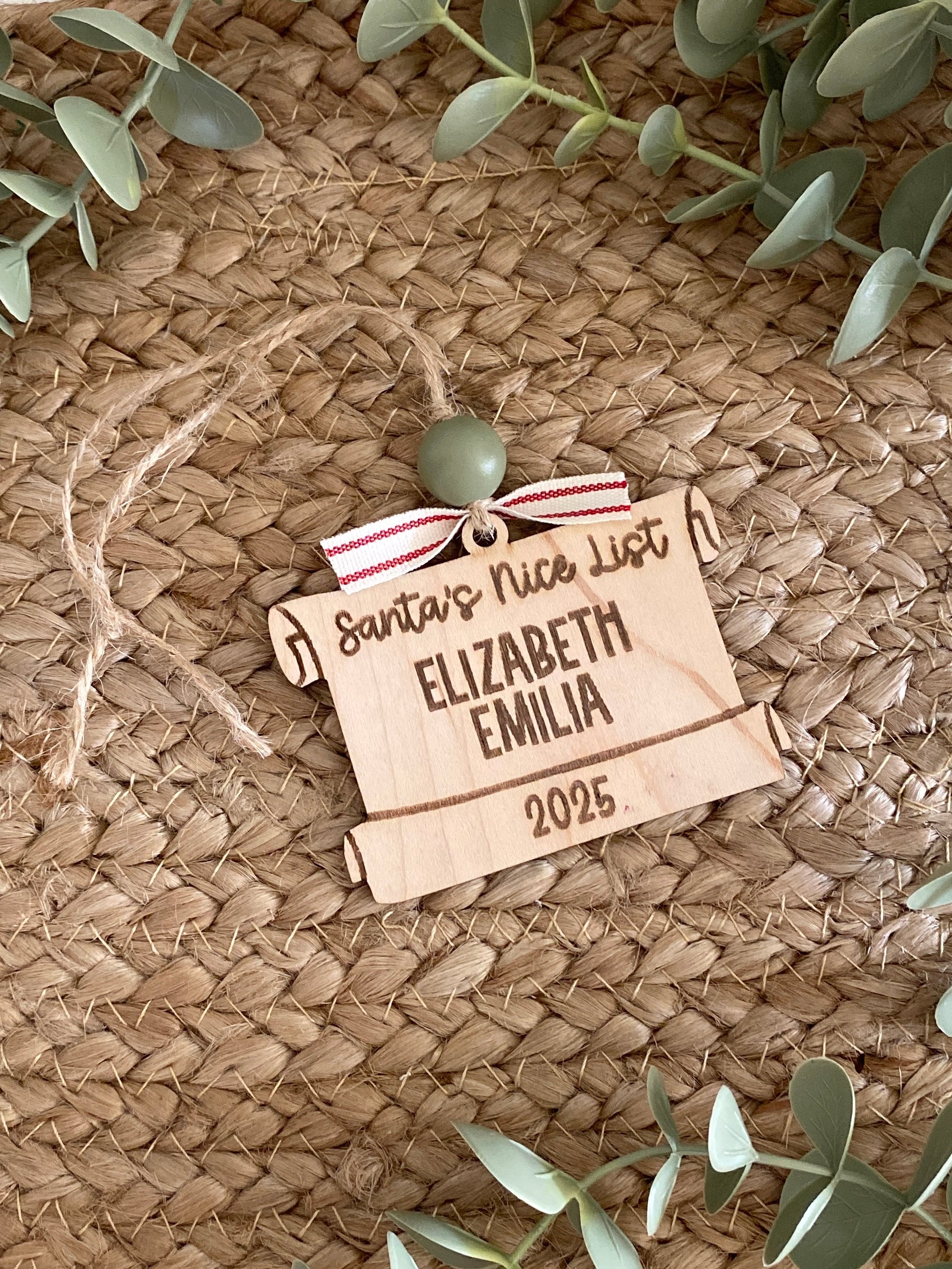 Keep the holiday spirit alive with our Santa’s Nice List Scroll Ornament, a festive reminder that your loved ones made the nice list this year! This playful ornament is carefully engraved on natural wood and designed to look like Santa’s scroll, complete with your family members’ names beautifully listed.