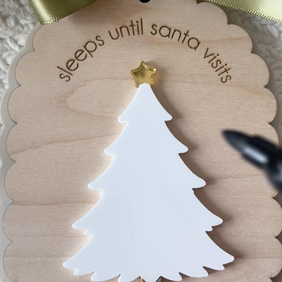 A festive acrylic tree in the center is designed for your child to write the number of sleeps using a dry-erase marker(available as an optional add-on). Wipe clean each day and watch the excitement build as the big night draws near!